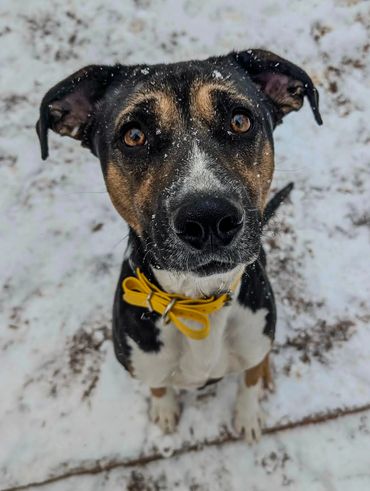 Mya is currently working through confidence-building and thoughtful, positive training. She is also being muzzle trained—not because she is aggressive or dangerous, but because when done correctly, a muzzle is a supportive tool. It helps lower stress, increases safety, and allows dogs like Mya to experience the world in a way that feels manageable and secure. And she’s doing wonderfully.